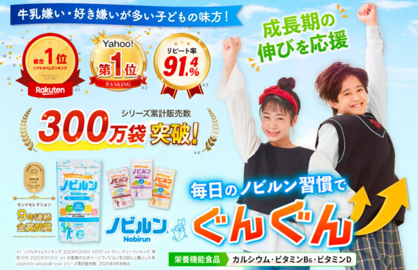 どんな成長サプリが良いか迷ったら、初回価格が安く長期間継続する場合のコスパが良い『ノビルン』がおすすめです!
