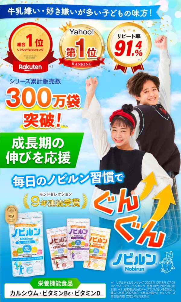 楽天ランキング(カルシウム部門)第1位※1の成長サポートサプリ